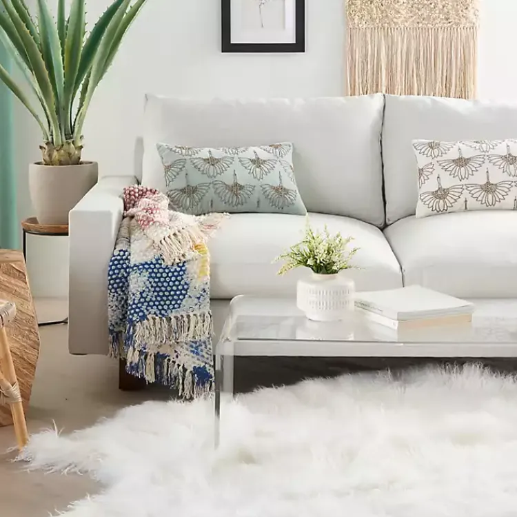 The Celadon Beaded Floral Motif Lumbar Pillow gorgeously balances modern glam and art decor allure. Detailed with gold and silver beading, the delicate flower designs are captivating to the eye.