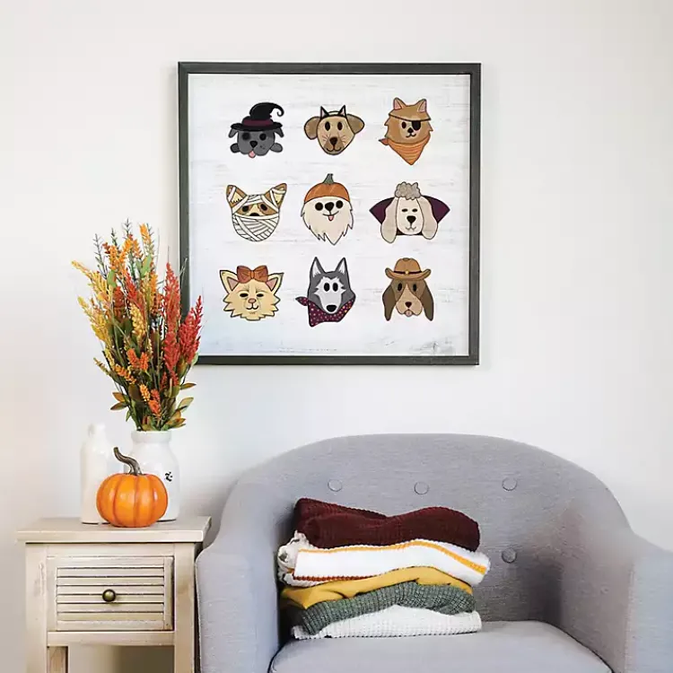 Put a frighteningly adorable touch on your seasonal decor with this Halloween Hounds Framed Art Print. These pups are all dressed up and ready for trick-or-treating!