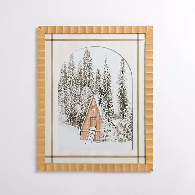 Escape to the serene, snow-covered mountains with this Winter Cabin in the Woods Framed Art Print! This gorgeous winter scene will look perfect with your modern holiday decor.