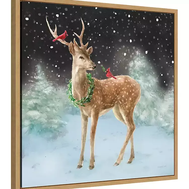 Bring the magic of winter into your home with this Woodland Celebration Framed Canvas Art Print. The snowy scene perfectly captures the quiet charm of the season!