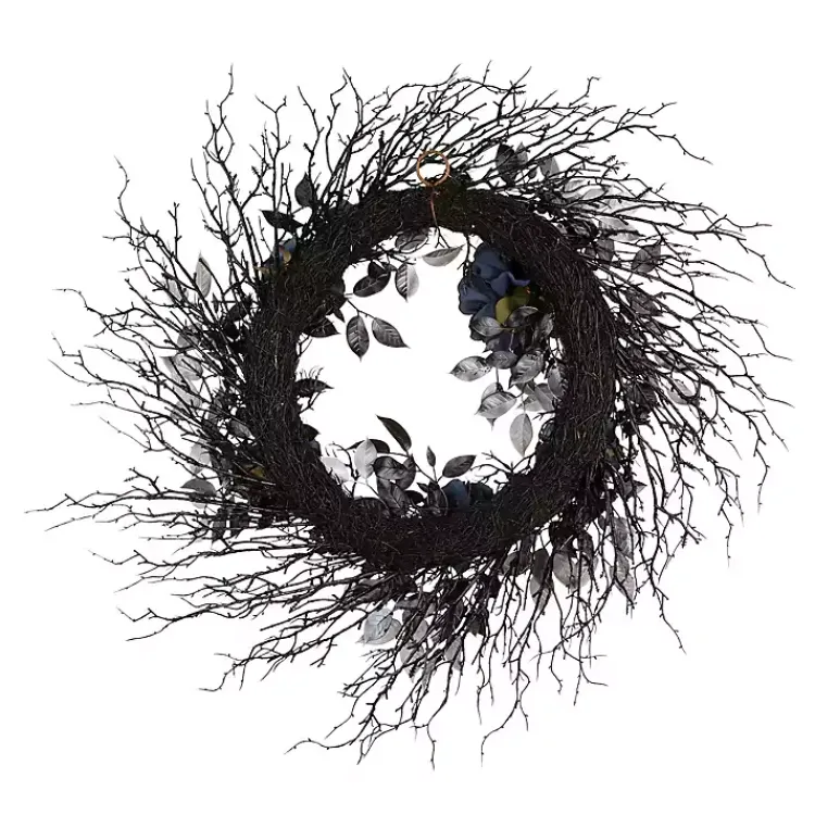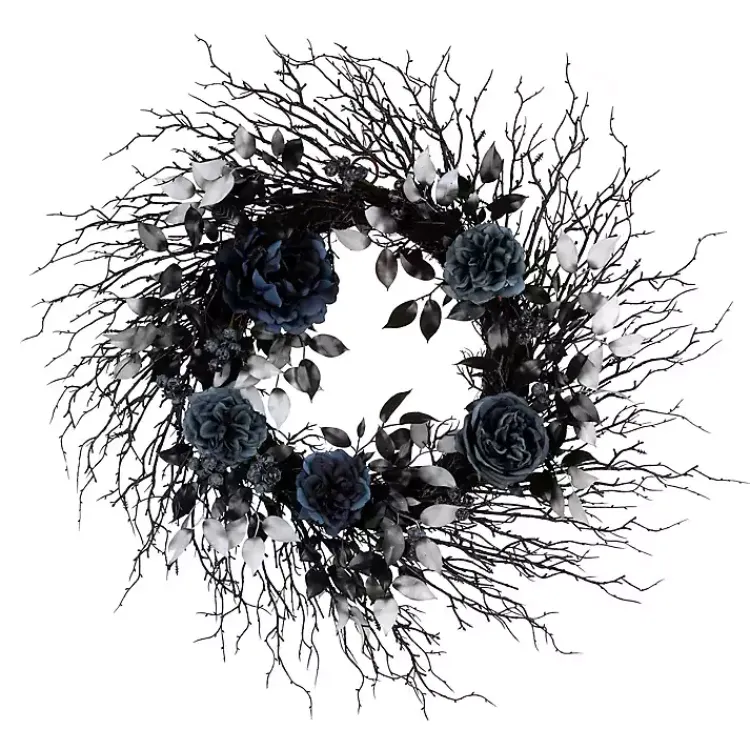 With a spooky twist, this Blue Roses and Deadwood Wreath is the perfect accent for your haunted house. Its dark hues and thorny twigs will transform your entryway for Halloween!