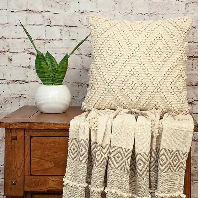 Add a cozy layer to your sofa with this Ivory Knotted Diamond Pillow. With its chic, textured design, this pillow will bring both style and comfort to your home!