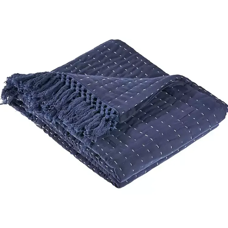 Make your living room feel cozy and warm with this Navy and Cream Stitch Fringe Throw! You’ll love chic blue color and the softness of the quilt-like texture.