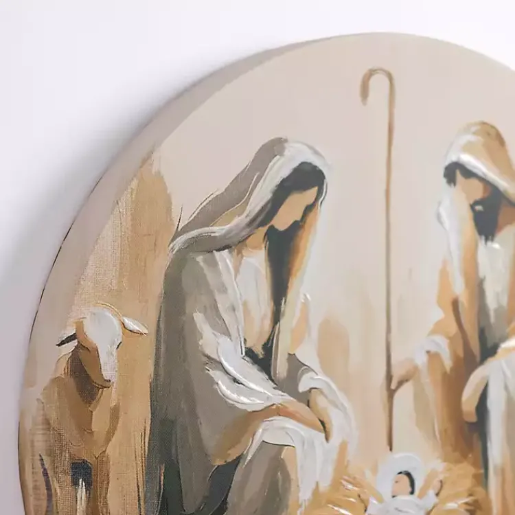 Our Round Nativity Scene Canvas Art Print will make a beautiful centerpiece for any wall or mantel display. Remember the sacred meaning behind the season with this religious wall art.