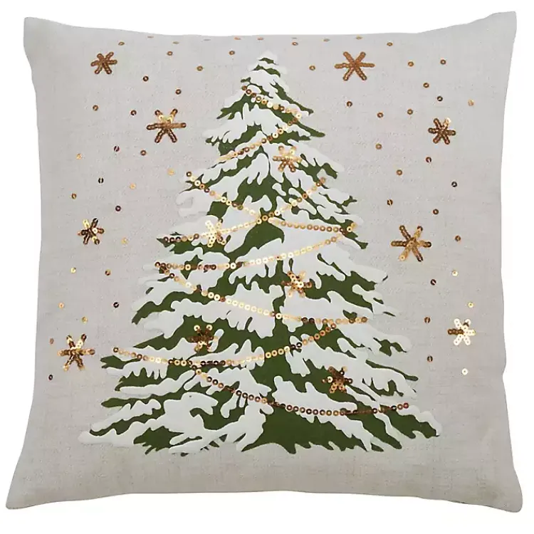 Make your space glow this White Christmas Tree LED Accent Pillow. The Christmas tree with gold sequins is surrounded by small, flashing lights.