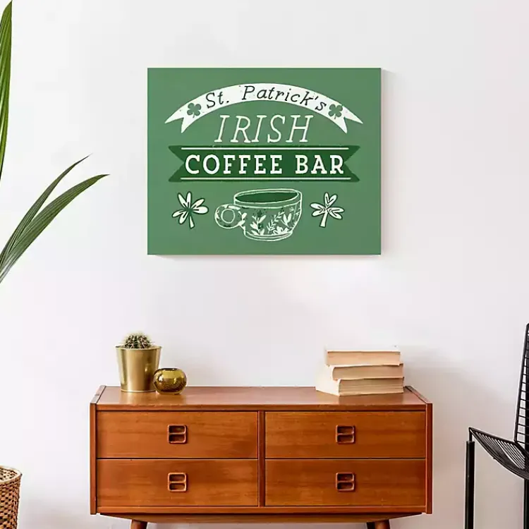 Embrace all things Irish this St. Patrick’s Day with this Green Irish Coffee Bar Canvas Art Print. It’s sure to bring a fun, festive feeling to your kitchen!