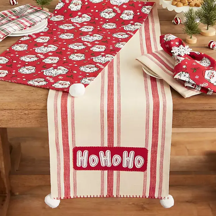 Transform the look of your holiday tablescape with just one flip! The Ho Ho Ho Santa Reversible Table Runner features a two-in-one design that makes it a staple for your seasonal decor. Whether you choose stripes or Santa, this festive table runner will spread the Christmas cheer.