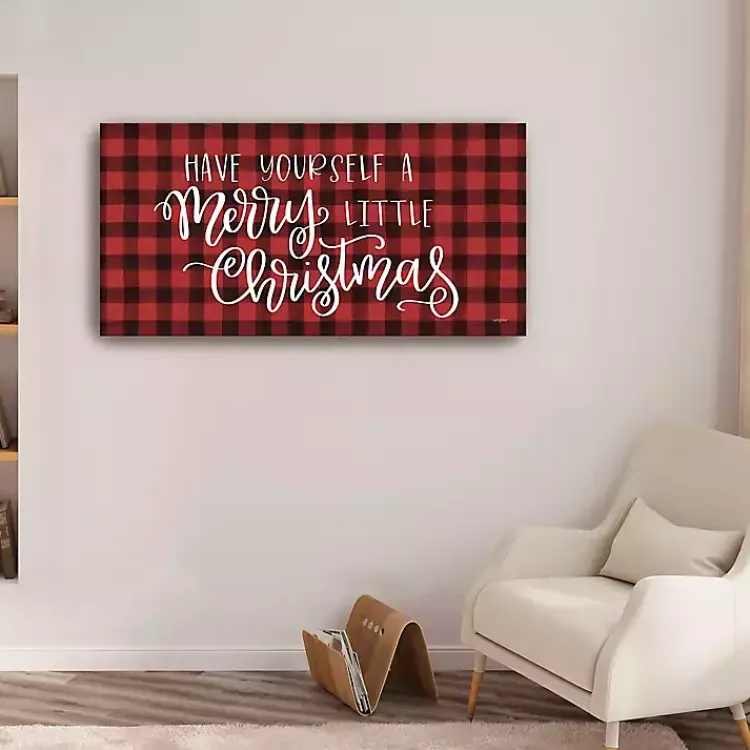 Christmas is classic and cool with this Red Merry Little Christmas Giclee Canvas Art Print. A dynamic red and black plaid emphasizes this holiday greeting.