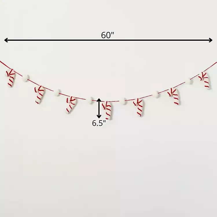 This Whimsical Candy Cane Garland brings a jolly dose of Christmas cheer. Featuring red and white striped candy canes interspersed with white pompoms, it will get everyone in the holiday spirit.