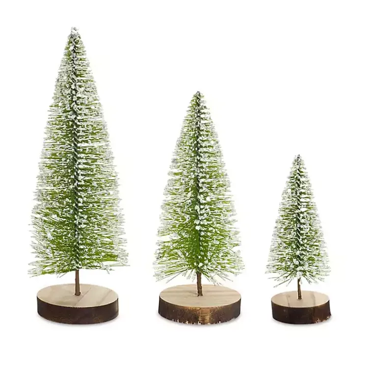 Decorate every inch of your home with some frosted holiday style! Sitting on chic wood bases, our set of twleve Frosted Bottle Brush Mini Trees are the perfect accents for your shelves and mantel.