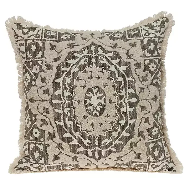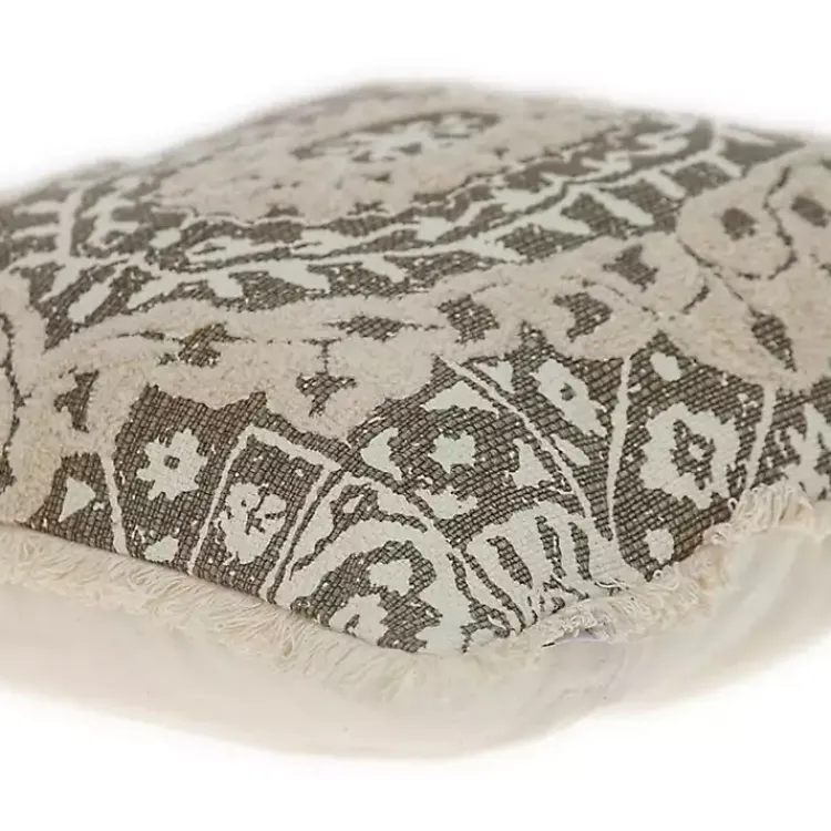 Embellish your sofa or bed design of this Green and Tan Medallion Fringe Pillow. Its ornate design and textured accents bring a timeless touch to any space!