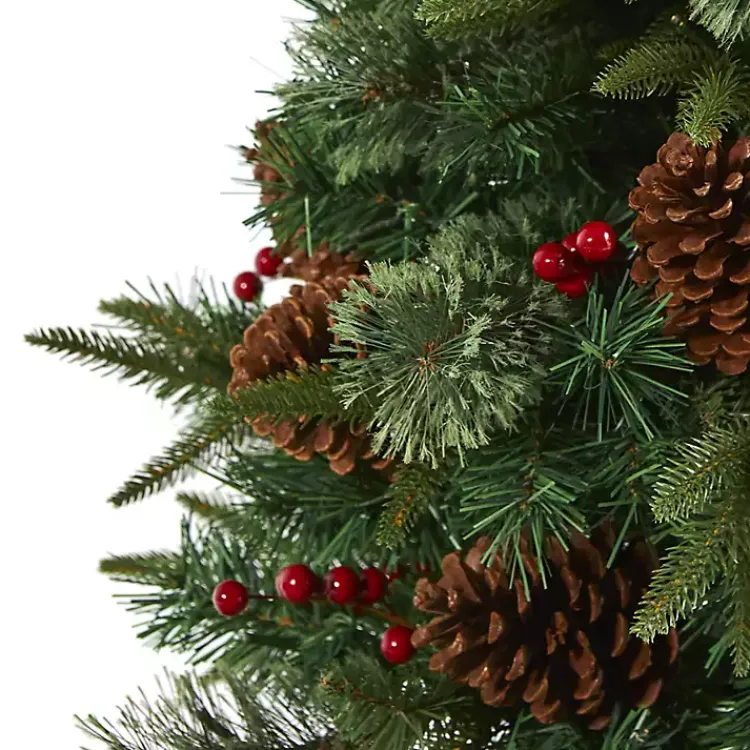 - Pine tree design with red berry and pine cone accents