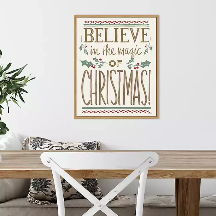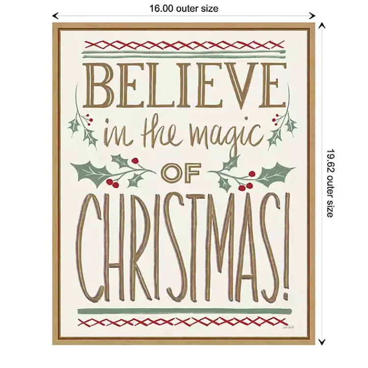 Spread the holiday spirit with this Believe in the Magic Christmas Canvas Wall Plaque! Its holly branch designs and warm, golden tones will charm all your holiday guests.