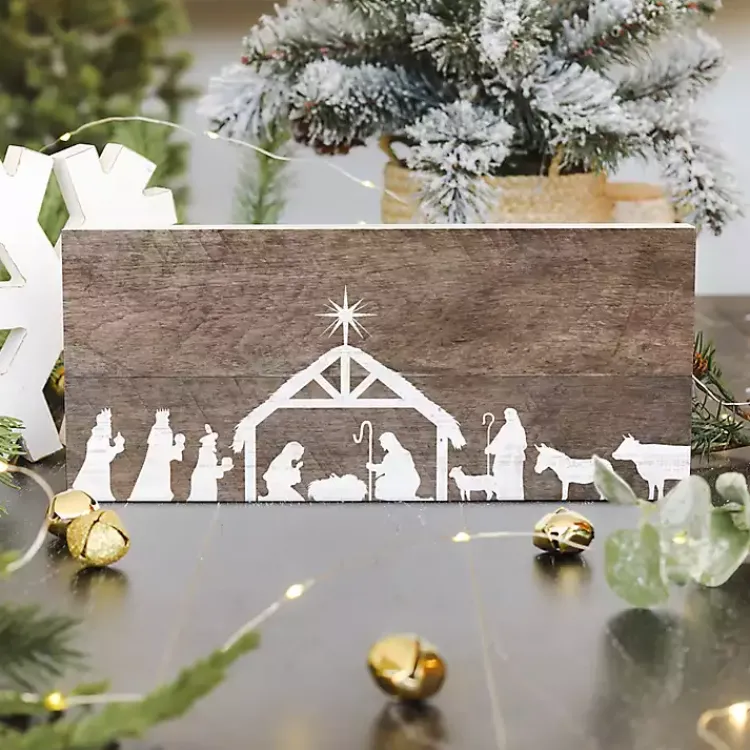 Celebrate the first Christmas with this Nativity Silhouette Wood Wall Plaque. Featuring the holy family, it adds a sentimental charm to your holiday decor!