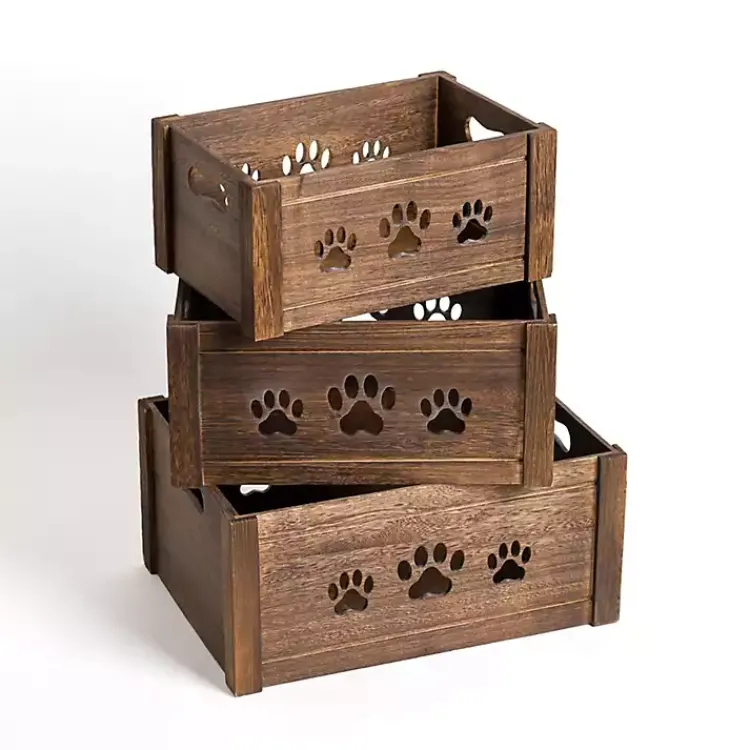 Keeping your space organized with a pet just got easier. These Paw Print Cutout Wooden Crates provide space to store your furry friend’s toys and accessories!