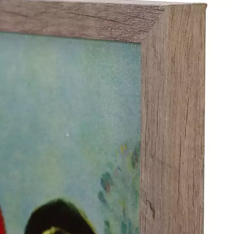 - Light brown distressed frame around wrapped canvas