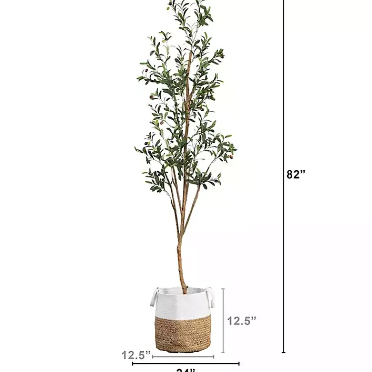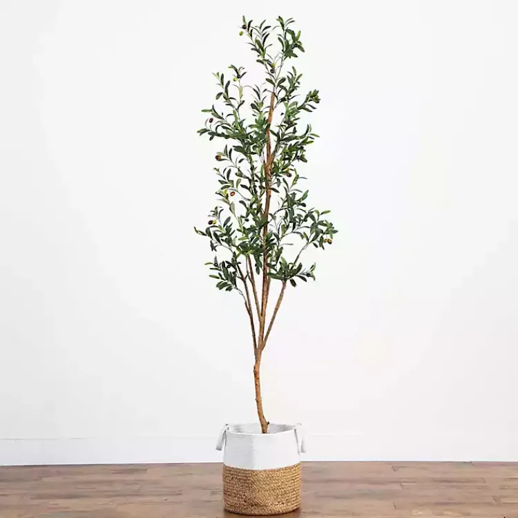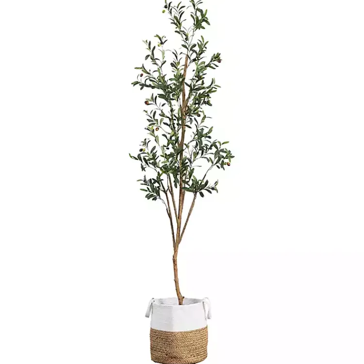 Bring a bit of the Mediterranean into your home with this Slim Olive Tree in Woven Planter. Lush leaves and faux olives will add an elegant touch of green to any space!