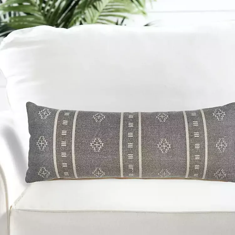 Make your rustic home cozy with a little bit of pattern and texture! Our Gray Southwestern Geo Lumbar Pillow is the perfect piece of comfort for your sofa or armchair.