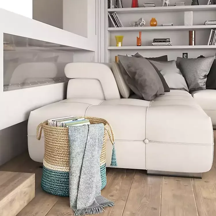 Store those random blankets, toys, or shoes in our Teal Off White Woven Basket with Tassel! You’ll love the woven texture and decorative tassel on this basket.