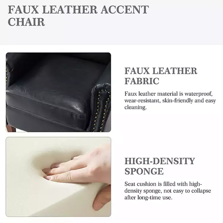 Experience the perfect combination of style and comfort with this Navy Faux Leather Nailhead Taylor Armchair! You’ll love sinking into this armchair any time of the day to relax and unwind.