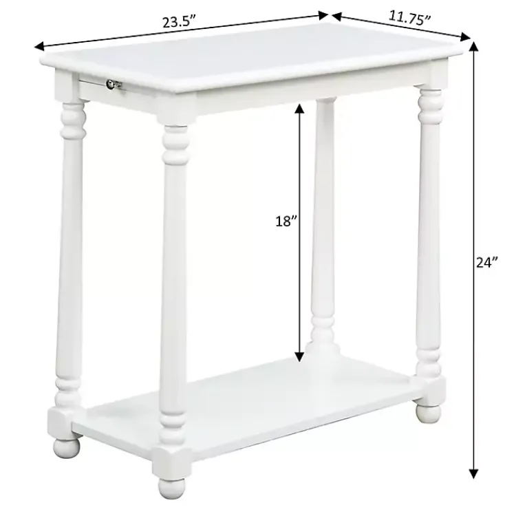 With a sturdy construction and a classically simple design, this White Regent Wood Accent Table will be the perfect addition to your space. Its pull-out shelf offers convenient, extra surface space whenever needed!