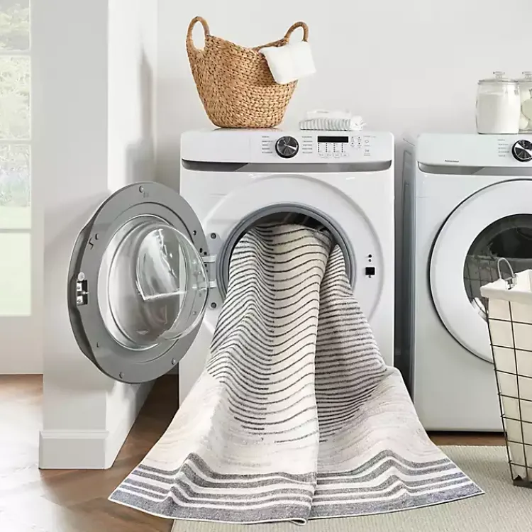 The Scandinavian charm of this Ivory Striated Sphere Washable Area Rug will give any space a chic update. With clean, modern lines and a machine washable design, it will keep your home fresh!