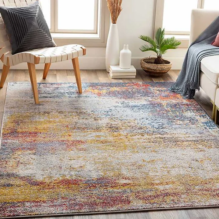 Revitalize your floors with this Modern Abstract Sunset Area Rug. Its bright collection of colors will make a lovely complement to any neutral furniture!
