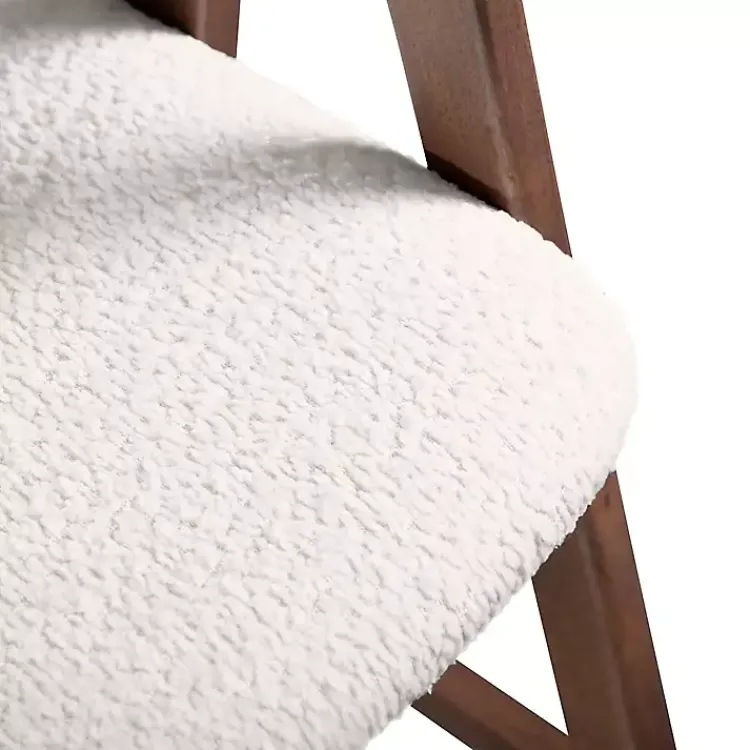 - Upholstered in white boucle fabric with foam fill