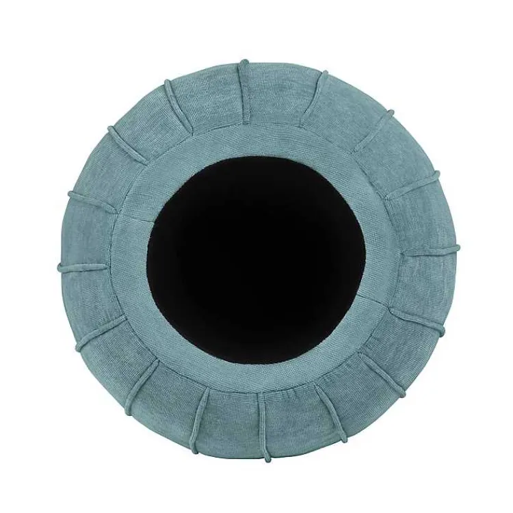Add a unique look to your space with our Blue Rounded Oval Ottoman. This piece of furniture stands out with its luxurious feel and piping accents.