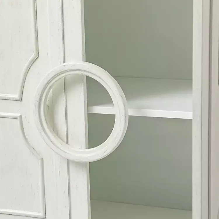 - Features four (4) geometric patterned doors and two (2) adjustable interior shelves