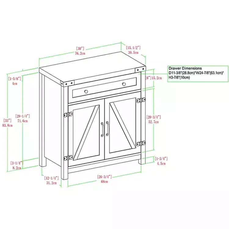 Picture your entryway transforming into a darling cottage entrance or a rustic ranch foyer with this Gray Wash Wooden and Metal Barn Door Cabinet! Complement the accent cabinet with a mirror, a painting, or some greenery. Go for a calm chateau glow or a fancy farmhouse soiree. Use the cabinet’s drawer for easy access storage for your car keys, notebooks, or phone chargers. And with adjustable shelves, this cabinet can be arranged to fit all your storage needs. Place it wherever you want a sprinkle of pastoral pleasantry, whether it’s in your living room, bedroom, home office, or entryway.