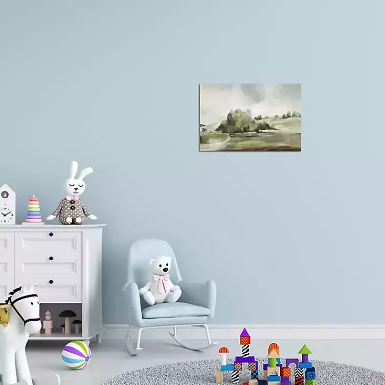 The contrast of the vibrant green landscape against a dark sky on our Green Country Rood Canvas Art Print makes for a visually stunning work of art. This piece is sure to be the centerpiece of any wall.