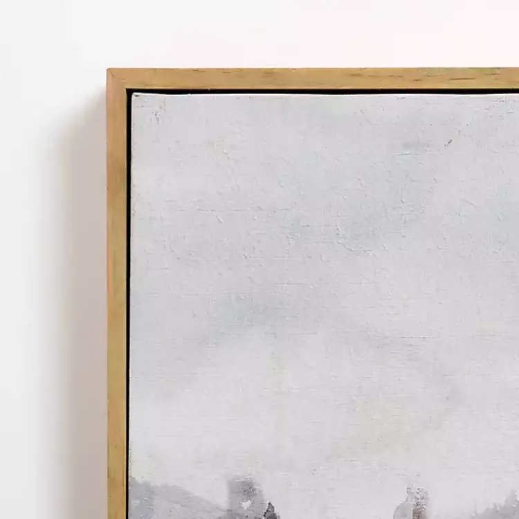 Featuring a quaint, foggy mountain landscape, this Lakeside Trees Framed Canvas Art Print will introduce a gorgeous, natural view to any room of your home!