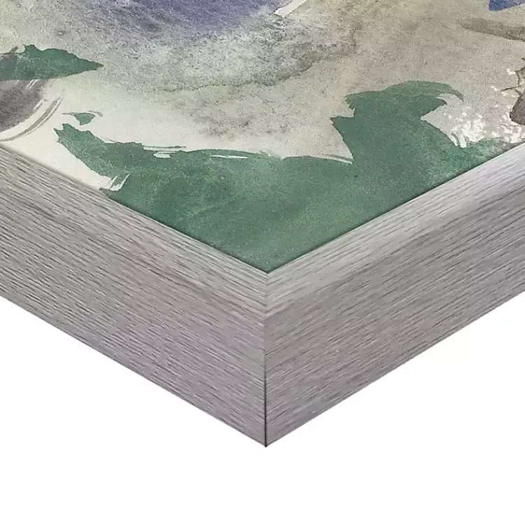 - Gray frame finish around wrapped canvas