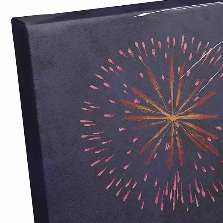 Decorate your space with a cute, festive flair! This Patriotic Puppy Pickup Canvas Art Print features adorable dogs, fireworks, and American flags, perfect for celebrating the 4th of July!