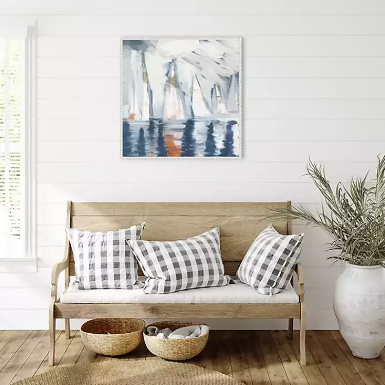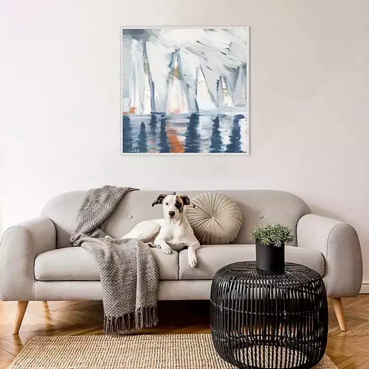 With a captivating, abstract style, this Sailboats in the Mist Framed Canvas Art Print perfectly portrays the peaceful harmony between nature and boats on the horizon!