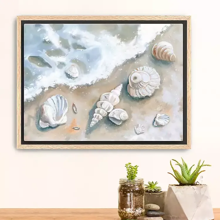 Feature a collection of untouched, lustrous seashells on any wall with our Seashells by the Seashore Framed Canvas Art Print. Gift this print to your favorite seashell collector!