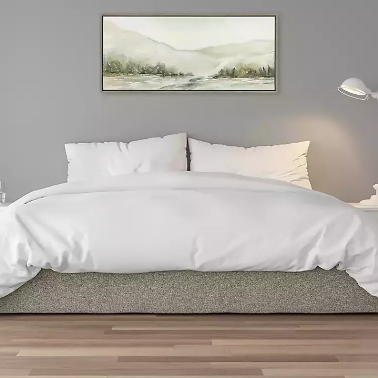 Wander through a winter wonderland with this Winter Mountain Landscape Framed Canvas Art Print. It captures the quiet beauty of a snow-covered landscape!