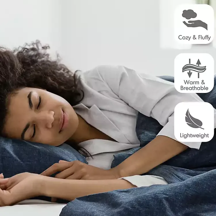 Crafted from soft and breathable microfiber, this Navy Chambray 3-pc. King Comforter Set is casual and comfortable. Lightweight, yet warm, it adds an extra layer of coziness that is perfect for year-round use.