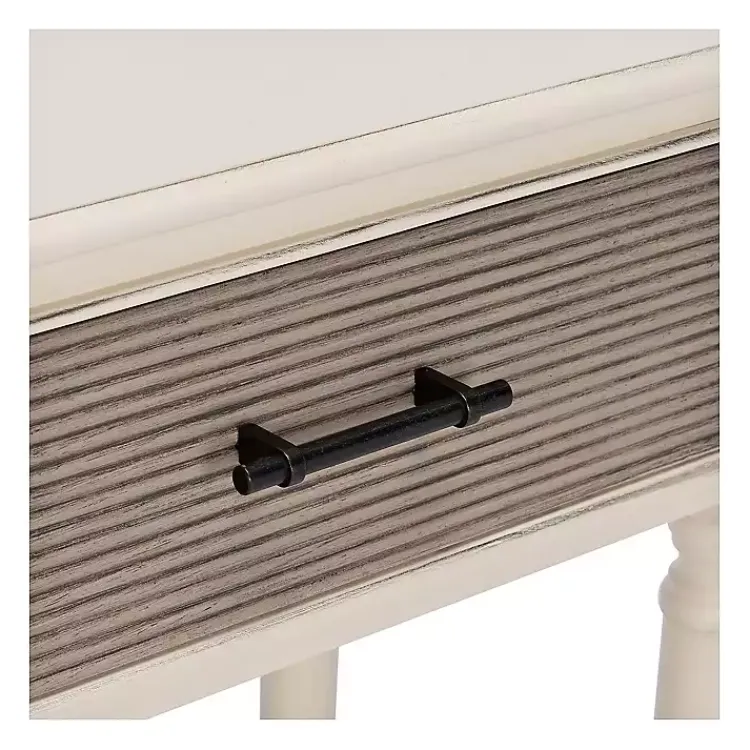 - Distressed gray drawer finish