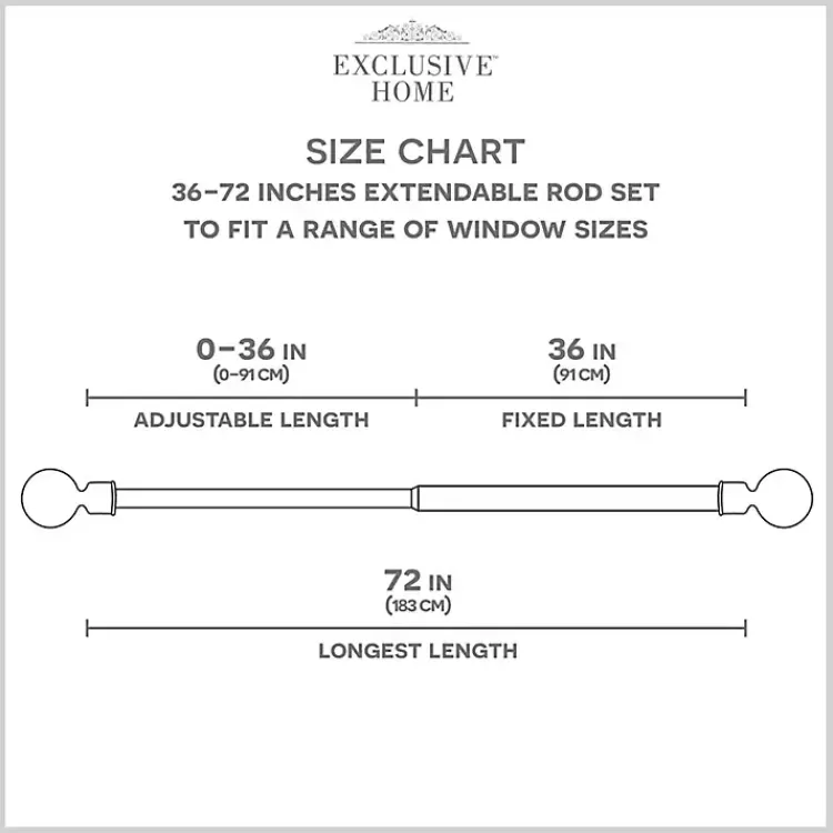 - Curtain rod measures 36L x 1 in. in diameter; extends up to 72L in.