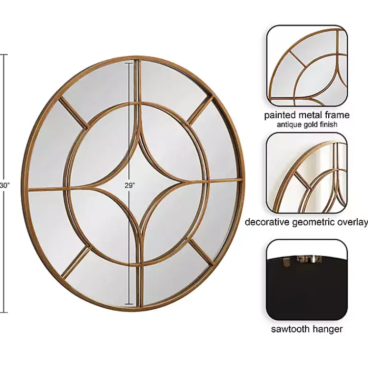 The modern industrial style of our Round Gold Geometric Overlay Wall Mirror is softened by the smooth metal frame. It’s an inspired piece that creates eye-catching wall decor and opens up space!