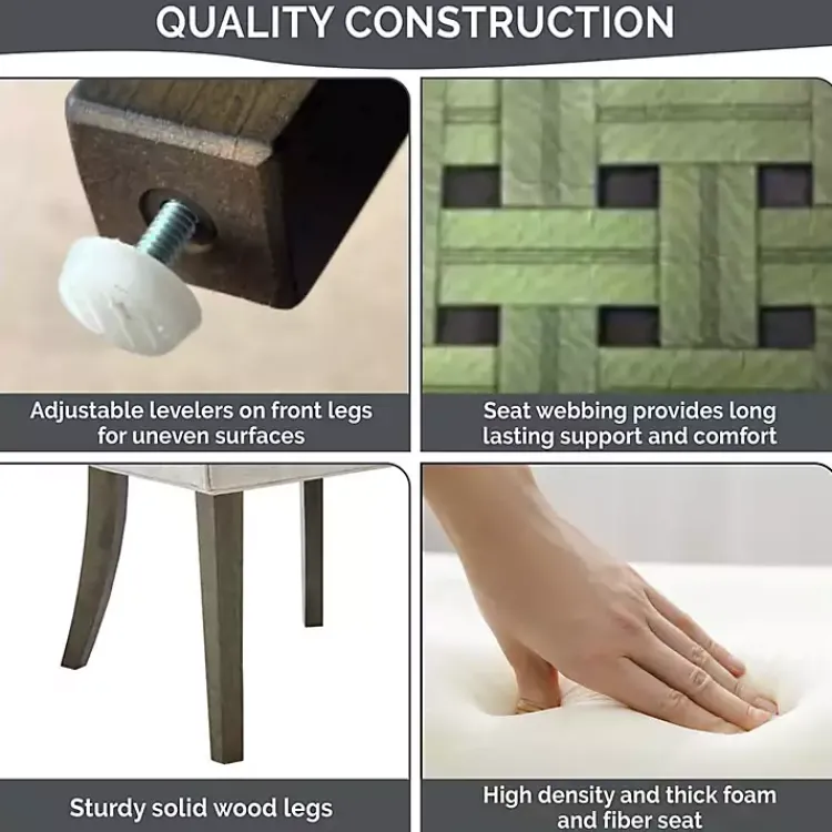 - Crafted with wood composite frames and solid wood legs