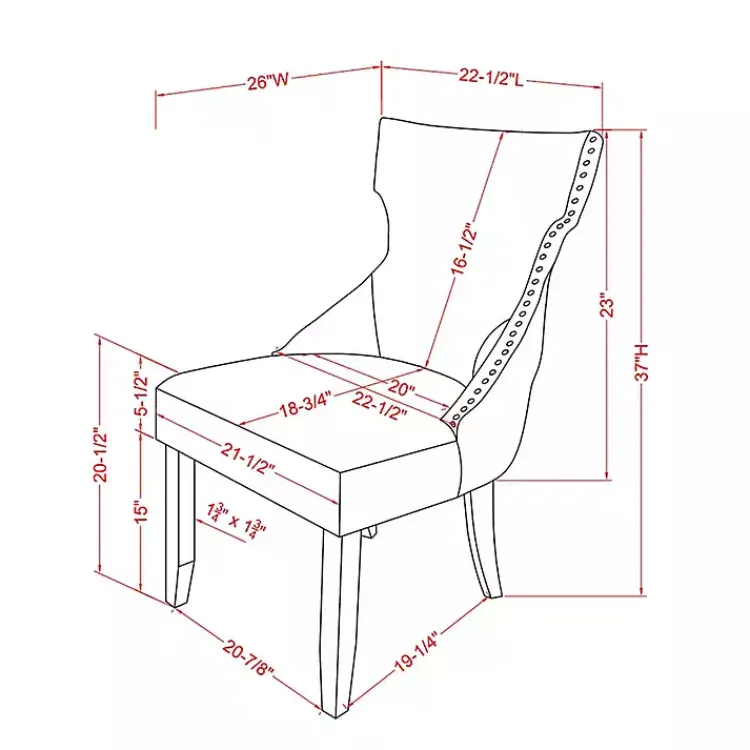 - Chairs measure 22.5L x 26W x 37H in. each; seat measures 20.5H in.
