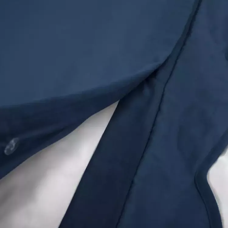 - Other side features a solid navy design
