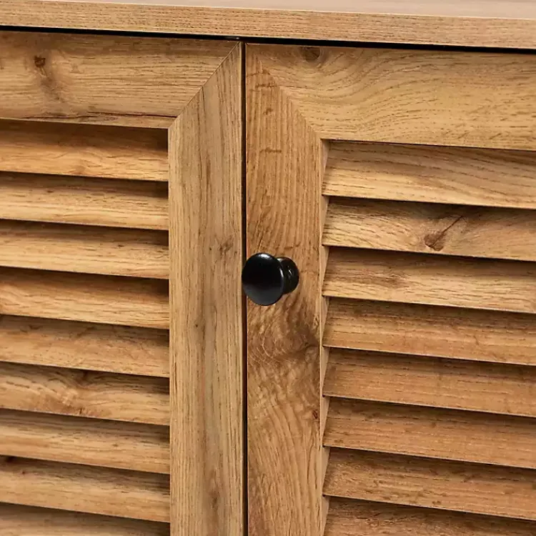 Give your mudroom a stylish upgrade with our Oak 3-Door Slatted Shoe Storage Cabinet! This convenient, ventilating piece holds up to sixteen pairs of shoes, making organization a breeze.