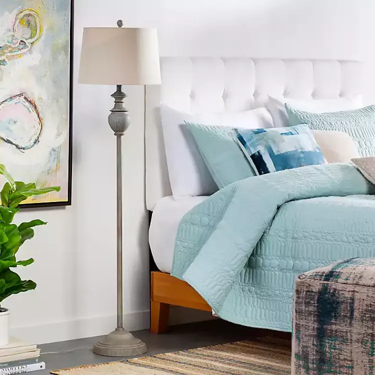 This Distressed Gray Hadlee Floor Lamp features an elegant design to elevate your space! The antique-inspired finish is sure to bring old-world charm and sophisticated style to your home.