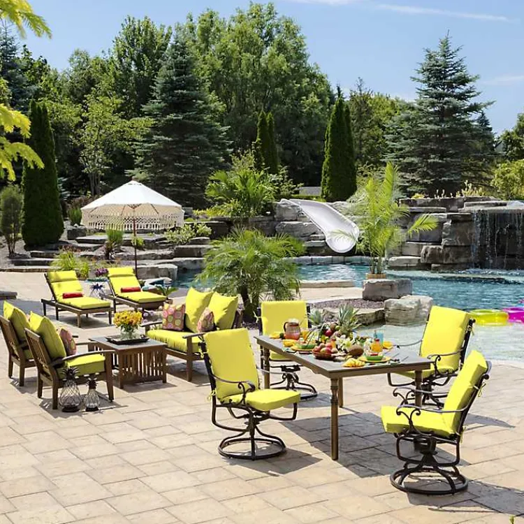 Bring a pop of color to your patio with our Lemon Leala Luxe Outdoor Dining Chair Cushion. This stunning cushion will revamp any of your favorite outdoor furniture.