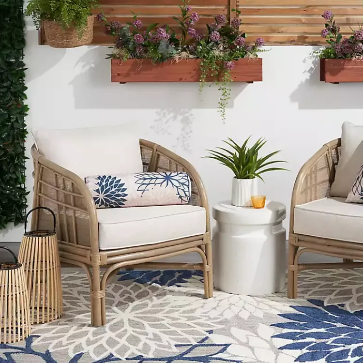 Keep your veranda oasis looking chic and inviting with this Navy and Beige Floral Outdoor Bolster Pillow! You’ll love how this comfortable cushion completes your seating area.