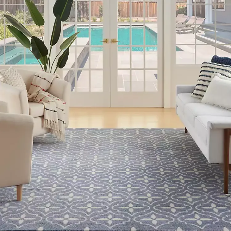 Add our Blue & Ivory Quatrefoil Indoor/Outdoor Rug for a simple yet stylish upgrade to any room in your home! This sophisticated rug is perfect for your living room, backyard patio, or anywhere in between!